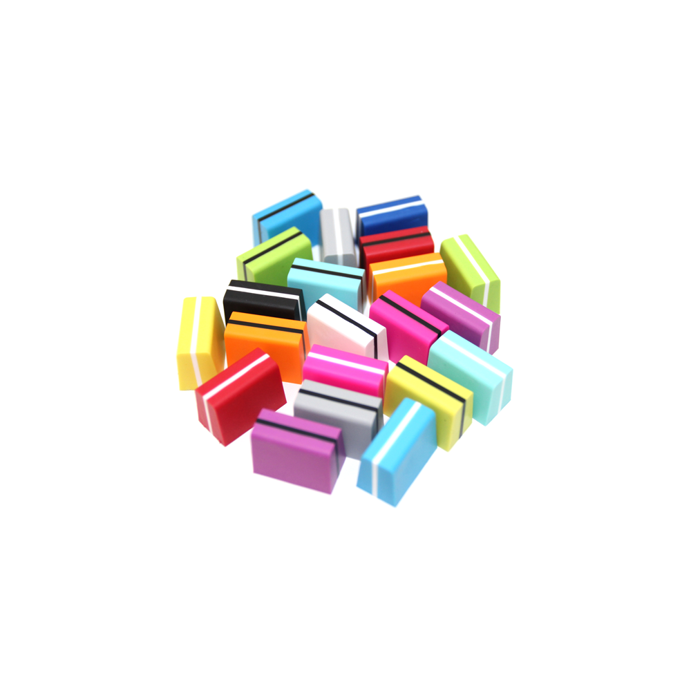 Hard plastic “ScratchCaps” are available in 12 colors.