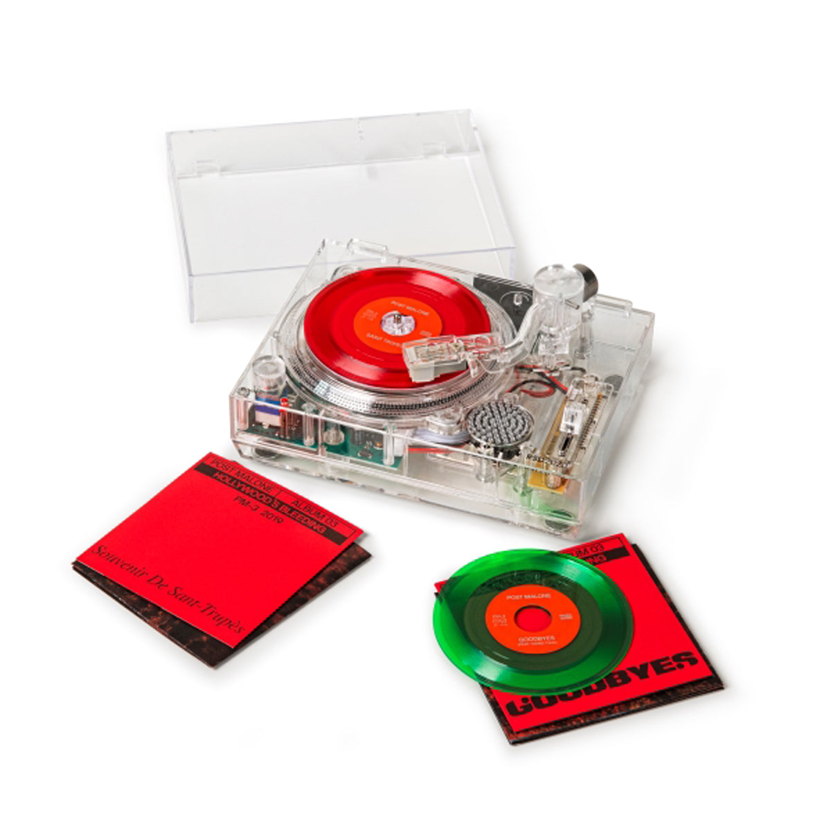 Record Store Day and Urban Outfitters are releasing a limited edition riff on the RSD3 mini-turntable, refreshed for 2020. The RSD2020 mini-turntable is made of transparent acrylic, allowing the inner workings of the turntable to be fully visible. An RSD2020 exclusive bundle containing the RSD2020 clear mini-turntable and two 3” colored vinyl Post Malone hit singles will be available at both participating Record Store Day record stores and online at Urban Outfitters. The indie record store exclusive bundle includes “Goodbyes” and “Saint Tropez” on 3” colored vinyl.